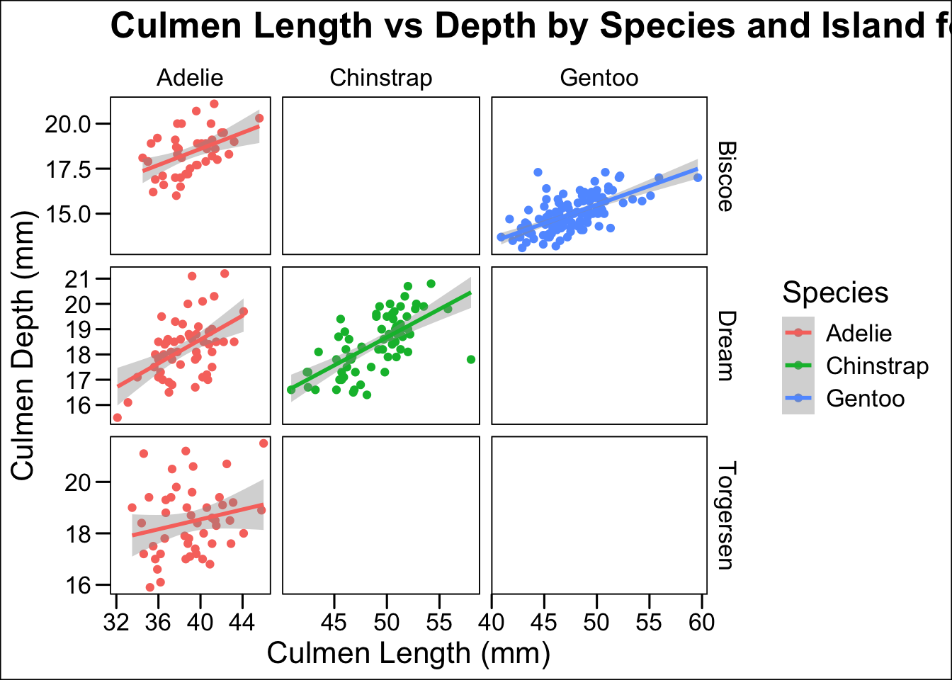 facet_grid(Island~Species, # facet_grid showing Island on the y axis and Species on the x axis